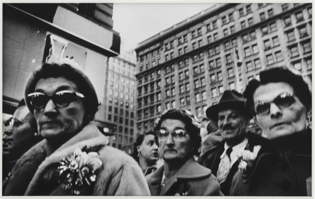 L’approche centrale est le groupe « Street Life ». Sept décennies de photographie de rue se rencontrent ici. Ce qu’ils ont tous en commun, c’est que la rue – au moment de la photographie – se transforme en scène et les passants en interprètes de leur propre vie quotidienne. C’est de ces archétypes de passants que traite ce groupe : comment se comportent-ils au fil des décennies, quels changements? Dans quelle mesure les photographes les abordent-ils différemment? Y a-t-il des tendances qui reviennent sans cesse?